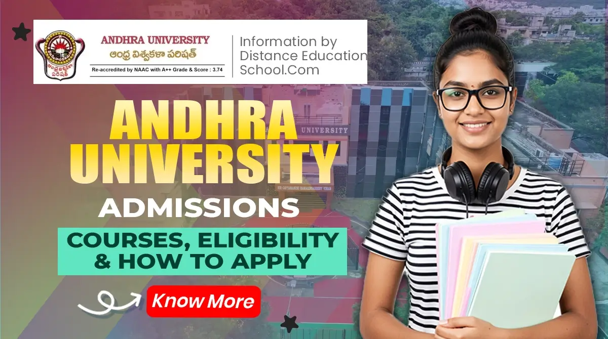 The university offers many UG and PG courses like BA, BCom, BSc, BBA, BCA, MA, MCom, MSc, MBA, and MCA. Students can also apply through Andhra University Distance Education Admissions for flexible learning.